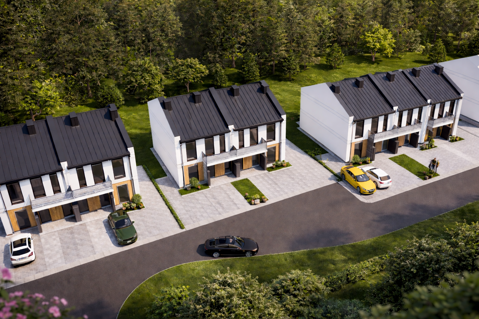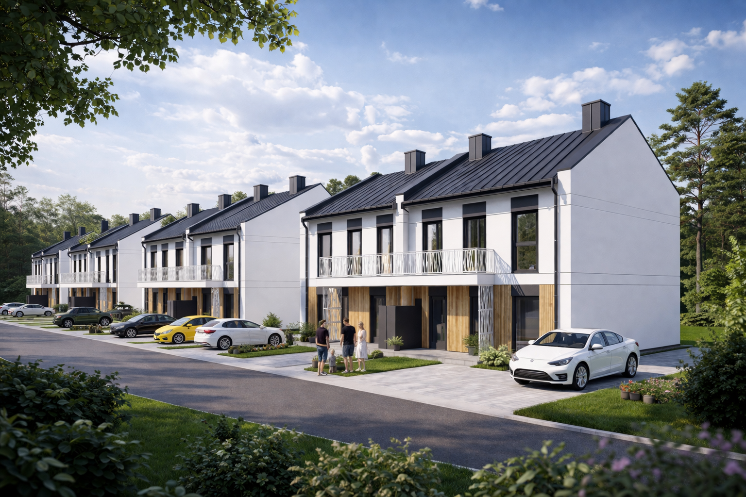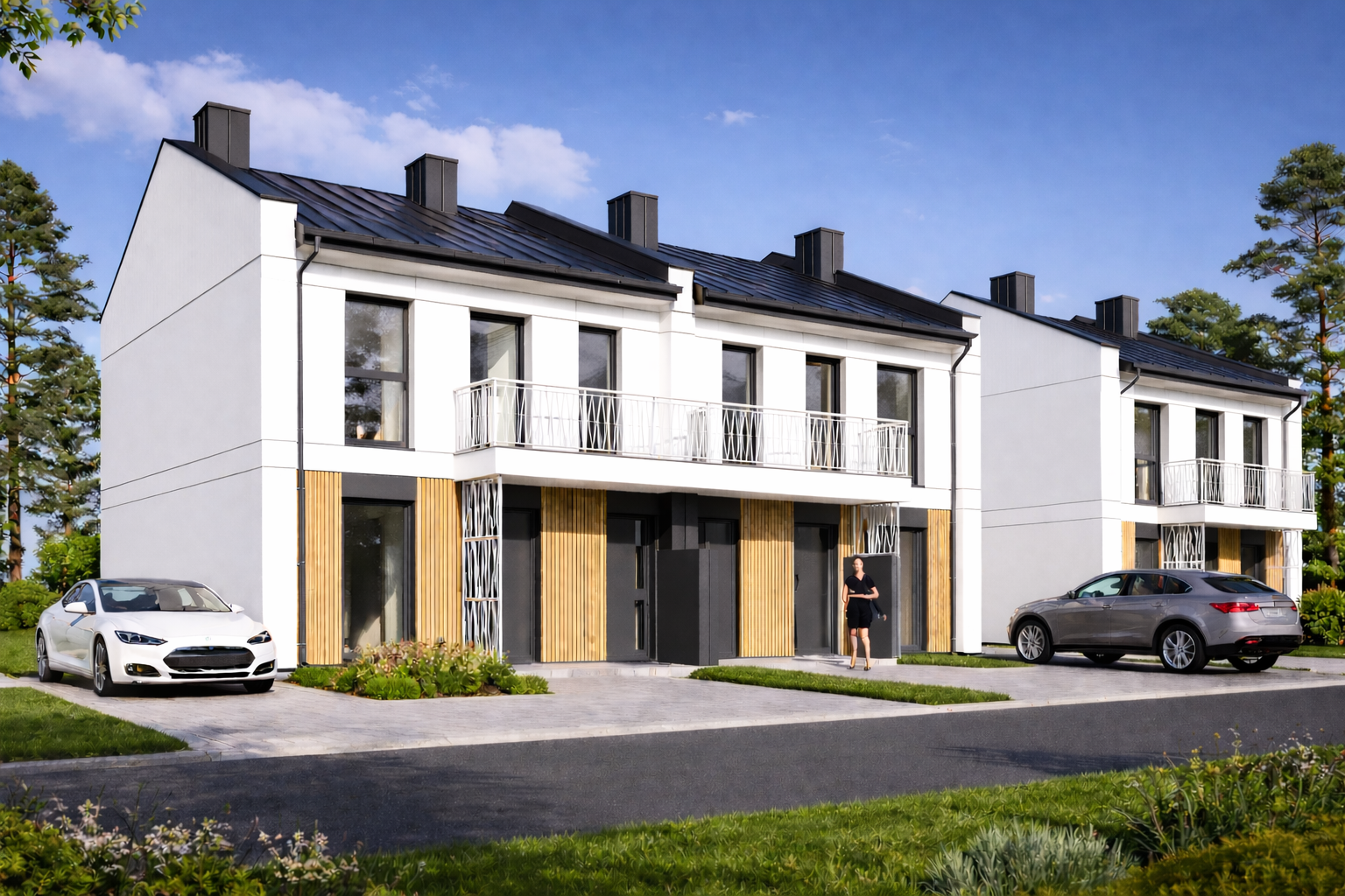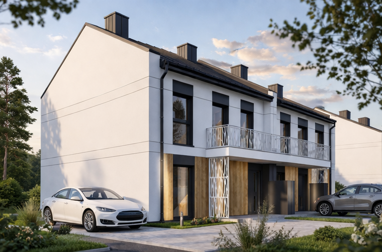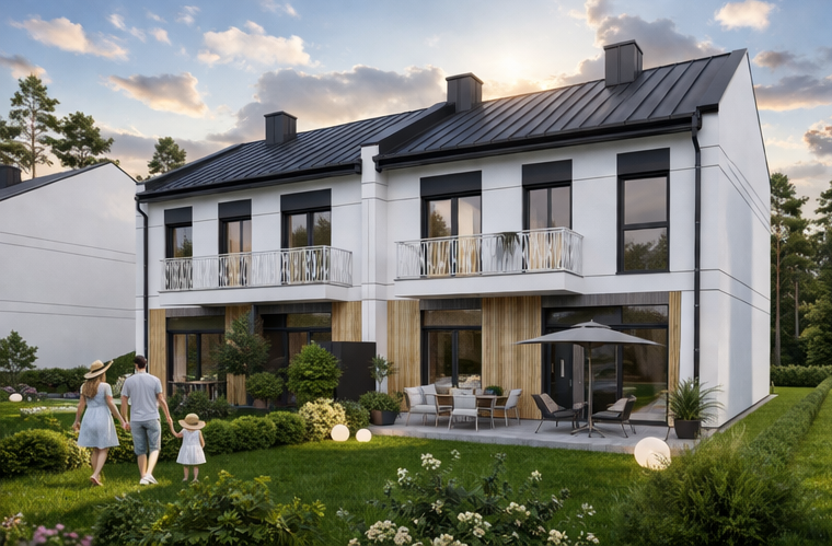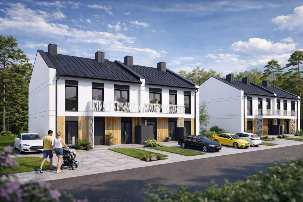 Inwestycja obejmuje 8 budynków 2-lokalowych w zabudowie bliźniaczej, co zapewnia mieszkańcom większą prywatność oraz poczucie uporządkowanej, kameralnej przestrzeni. Osiedle będzie ogrodzone i zamknięte, a wjazd zostanie zabezpieczony bramą sterowaną pilotem. Dodatkowo każde mieszkanie wyposażone będzie w wideodomofon, co podnosi poziom bezpieczeństwa i wygody codziennego użytkowania.